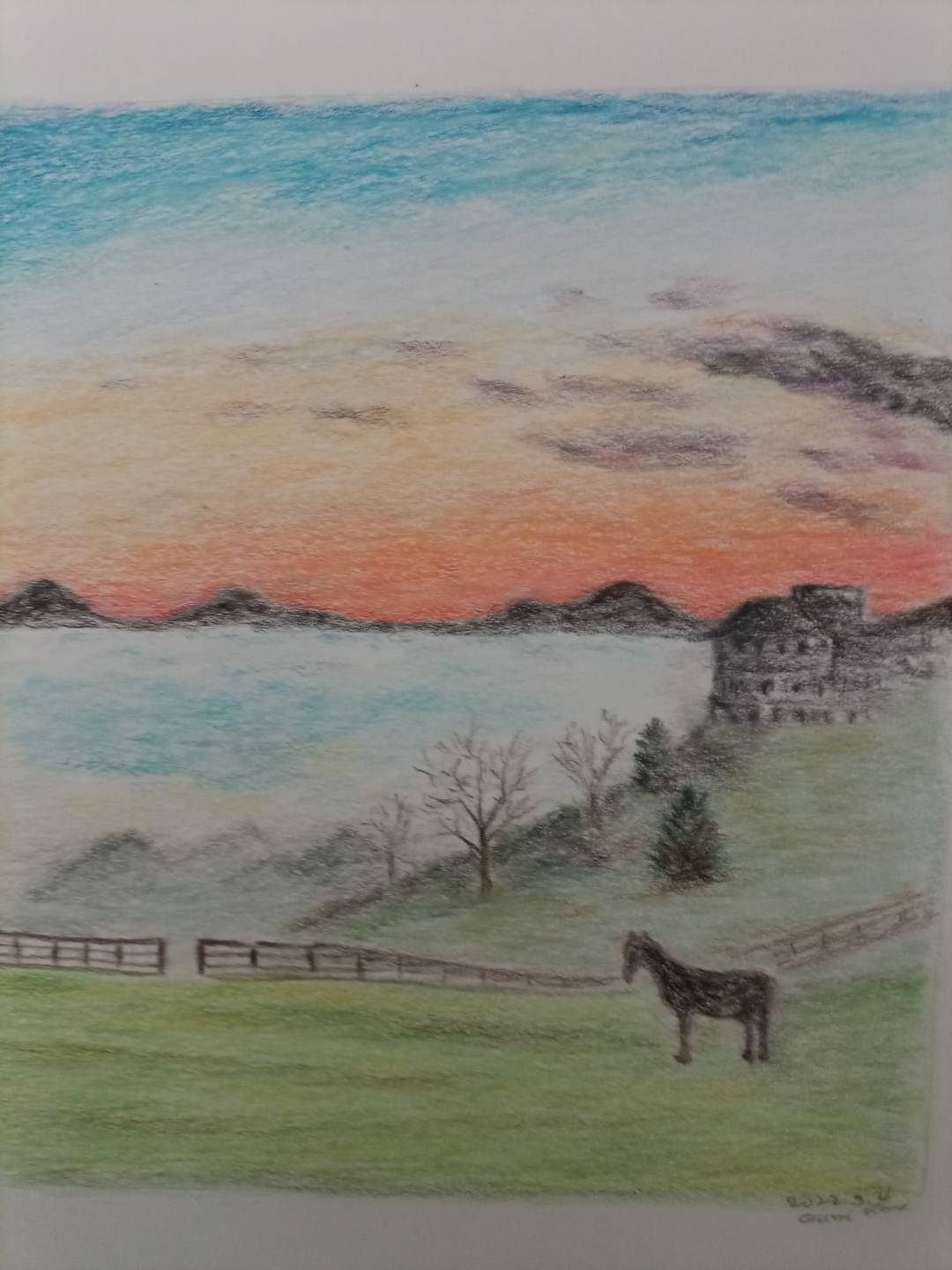 노을 풍경 그려 보았어요