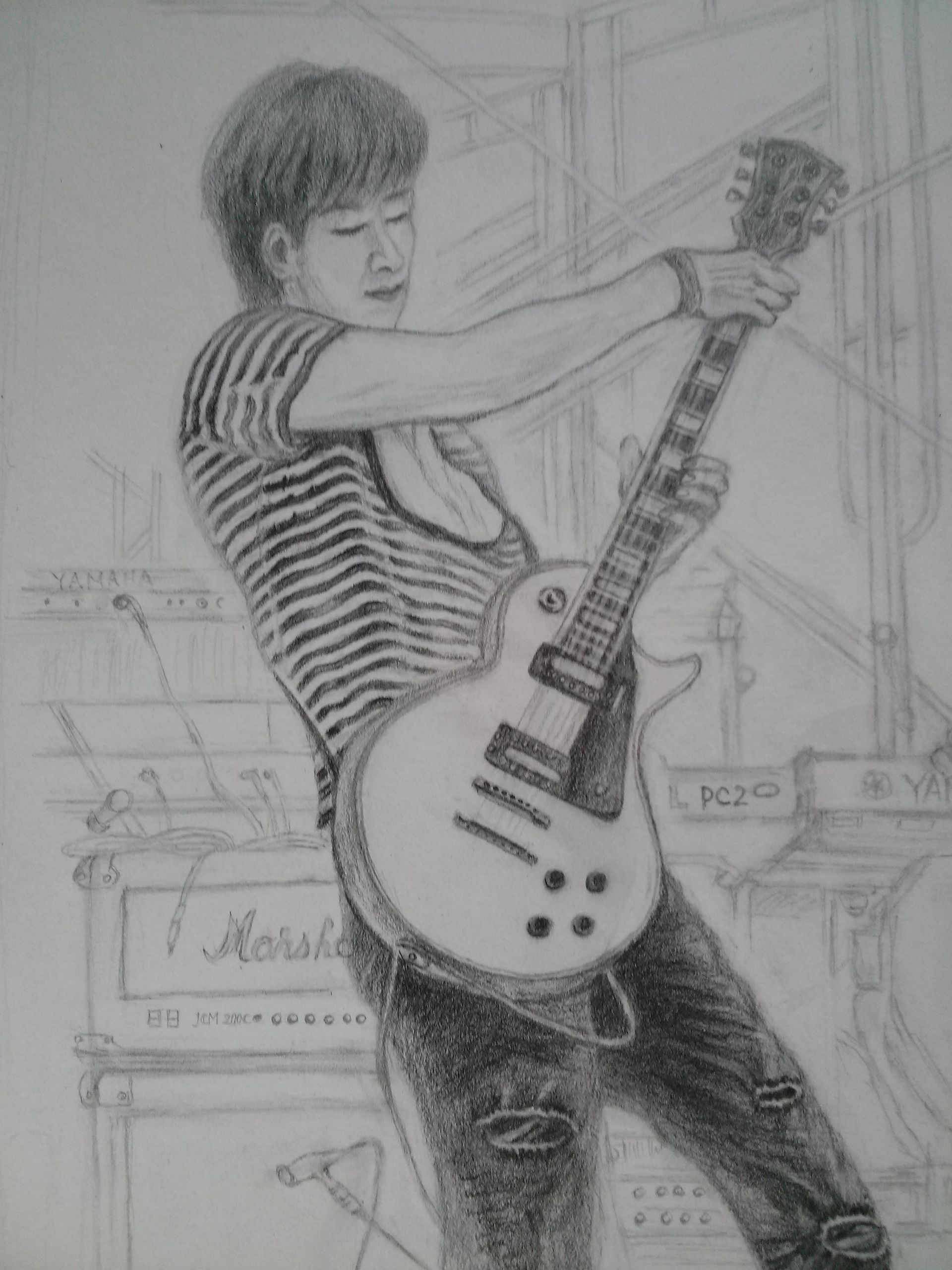 선생님 기타치는 그림그려서요 .일주일 정도 신경을 썻는데 ....요 . 잘못한데가 잇네요 선생님의 조언 부탁 합니다.