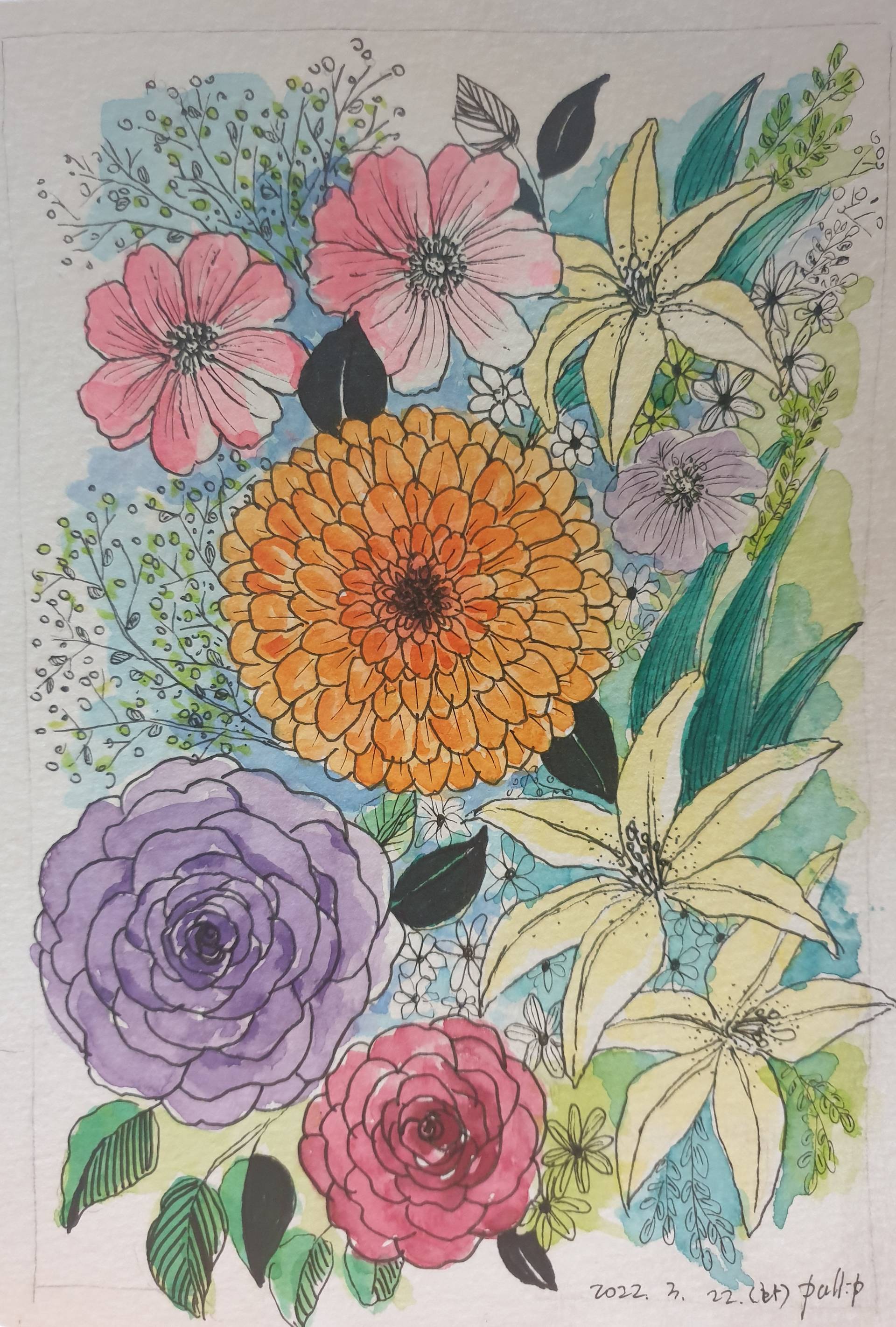 그런데 채색하다보니 백합잎색이