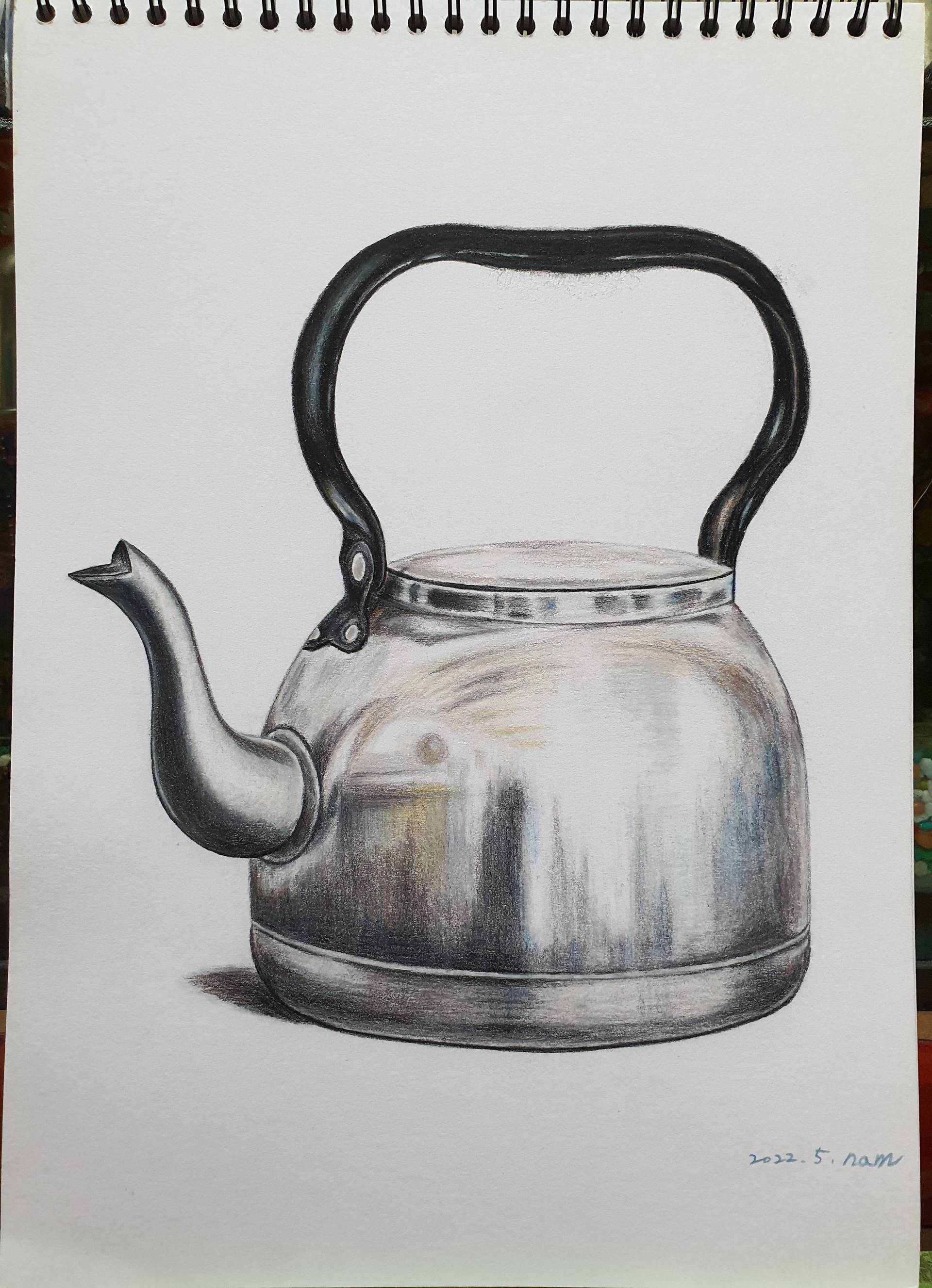 주전자의 형태가 복잡해 균형 대칭 잡는게 어려워보였는데 선생님 자세한 설명 덕분에 어느정도 따라 그릴수 있어 기분 좋았습니다^^~