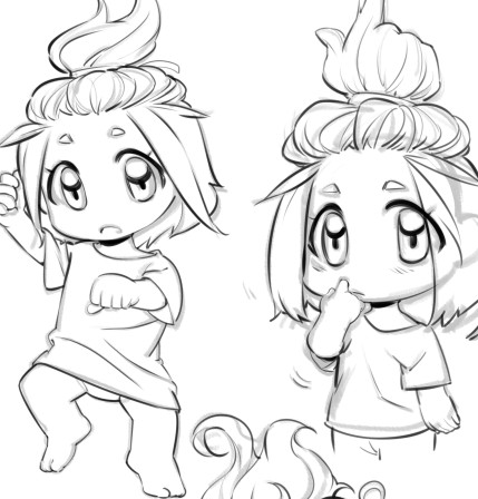 신체 비율만 이렇게 그려낸 것으로 끝낼 것이 아니라 이목구비마저도 약간은 둥글고 애매모호하게 그려내는 것이 좀 더 현재의 SD 캐릭터라고 하는