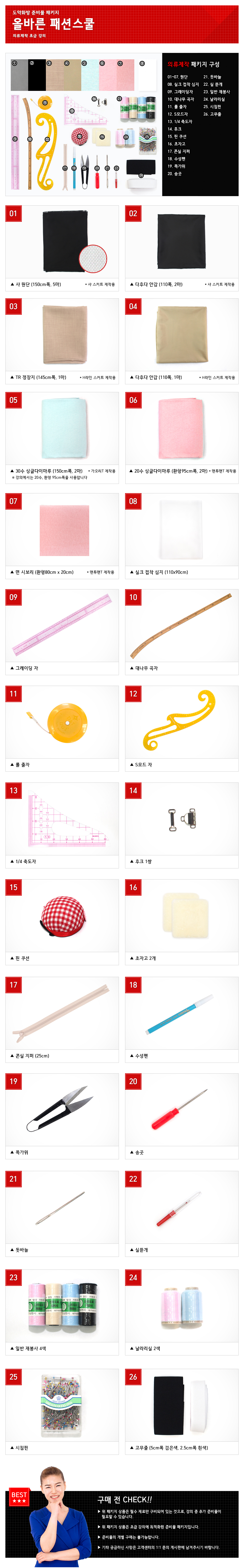 의류제작 초급 준비물 패키지 구성은 다음과 같습니다.