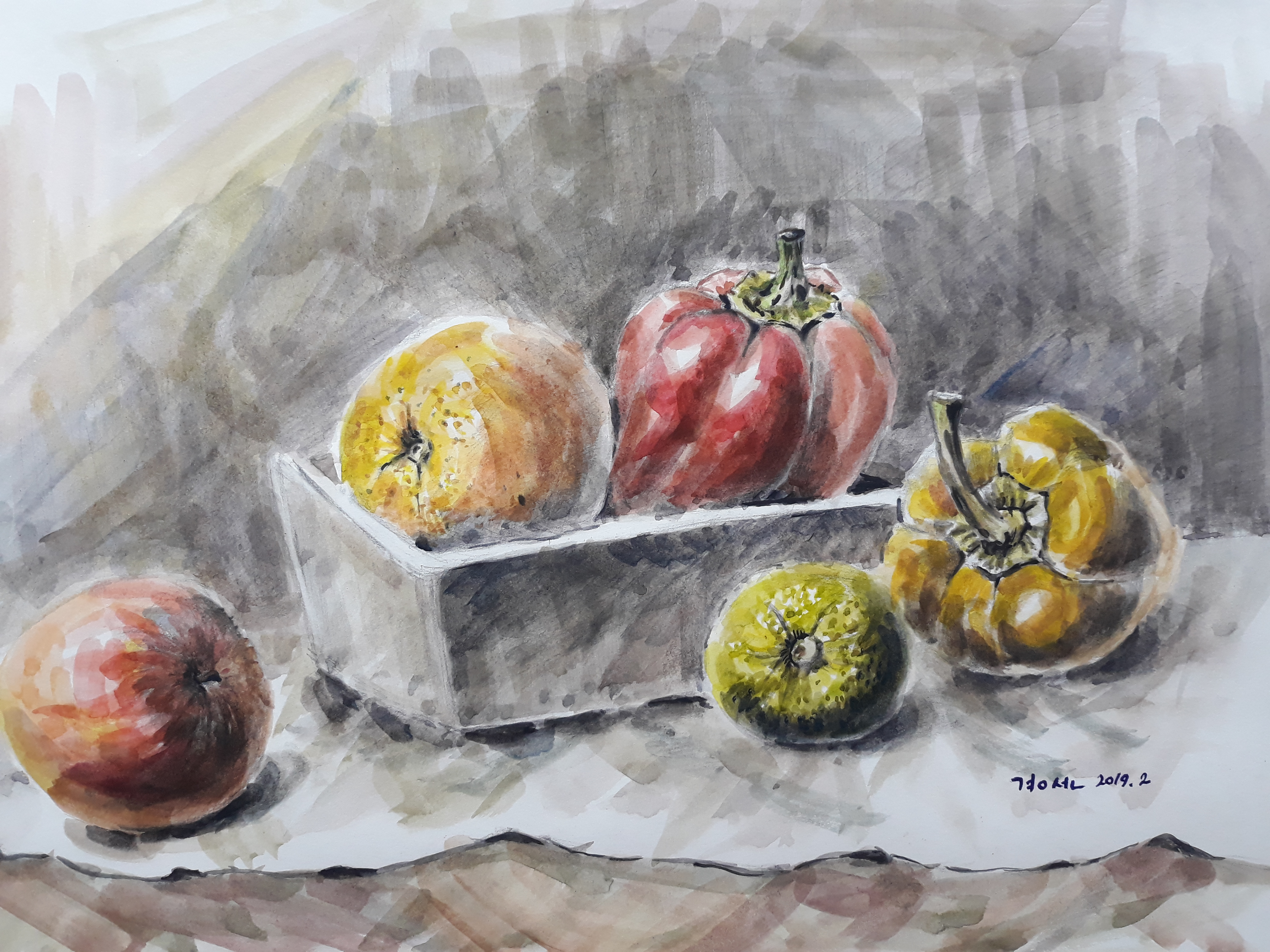 새는 괜찮은데 밑에 정물은 넘 급하고 어두워졌어요~~ 터치들이...형태부터..제대로 그리고 하나하나 꼼꼼히 하셔야 합니다~
