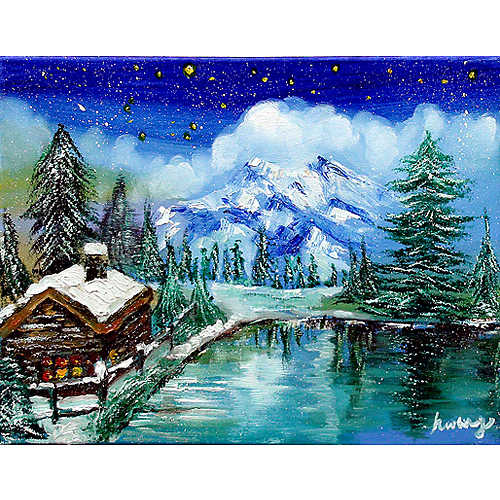 이 작품은 크리스마스 작품별강의 중급 과정의 '별빛이 감싸안은 성탄의 밤'입니다. 이 작품은 어두운 밤하늘, 금방이라도 쏟아질듯한 별빛 아래 눈이 수북하게 쌓여있는 산 속에서 따뜻하게 성탄의 밤을 맞이하는 산장, 살얼음 띈 호수에 비치우는 그 풍경들을 '겨울 풍경'의 느낌이 나도록 아름답게 살려낸 작품입니다. 다양한 기법과 다양한 준비물! 나이프 페인팅과 붓 펜을 이용하여 작품의 느낌을 향상시키면서 하나의 작품을 완성시켜봅시다.
