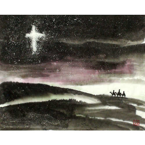 전숙인 선생님의 ' 묵향이 느껴지는 수묵화' 초급 작품강의, '동방박사와 메시아의 별' 입니다. 이 작품은 동방에서 3인의 현자가 메시아의 별을 보고 아기 예수가 탄생한 곳을 찾아와 경배를 드렸던 내용을 한국화의 느낌으로 표현해 본 퓨전 수묵화 강의입니다. 소금을 통한 먹흡수 효과를 이용해 작품을 완성해 봅니다.