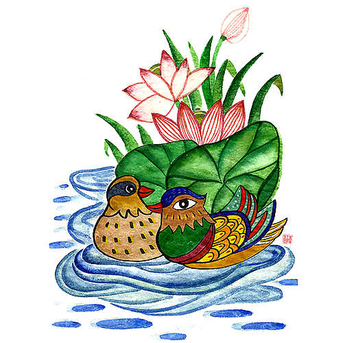 금슬 좋은 부부를 기원하는 그림 : 원앙도