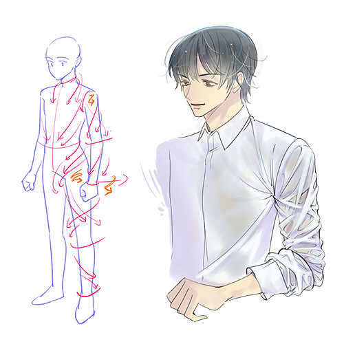 2. 관절 및 각 부위별 옷주름의 특징을 익혀봅니다.