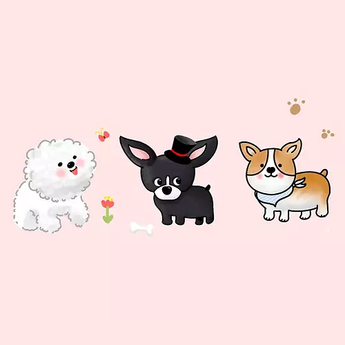 세 가지 강아지 캐릭터를 그려보겠습니다.