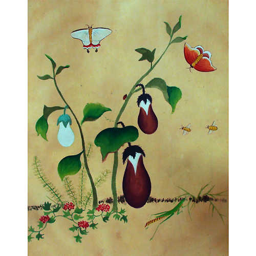 권연진 선생님의 '채색에 美치다' 초급 작품강의, 초충도[가지와 벌]입니다. 신사임당이 그린 것으로 추정되는 8폭 병풍으로 이루어져 있는 신사임당초충도병(申師任當草蟲圖屛) 중 한 그림을 채색화로 표현해 본 것으로 방아깨비가 눈에 띈다고 해서 [가지와 방아깨비]라고도 불립니다. 섬세한 필치와 구도로 그려져 있으며, 단아함과 사실성이 돋보이는 작품입니다.