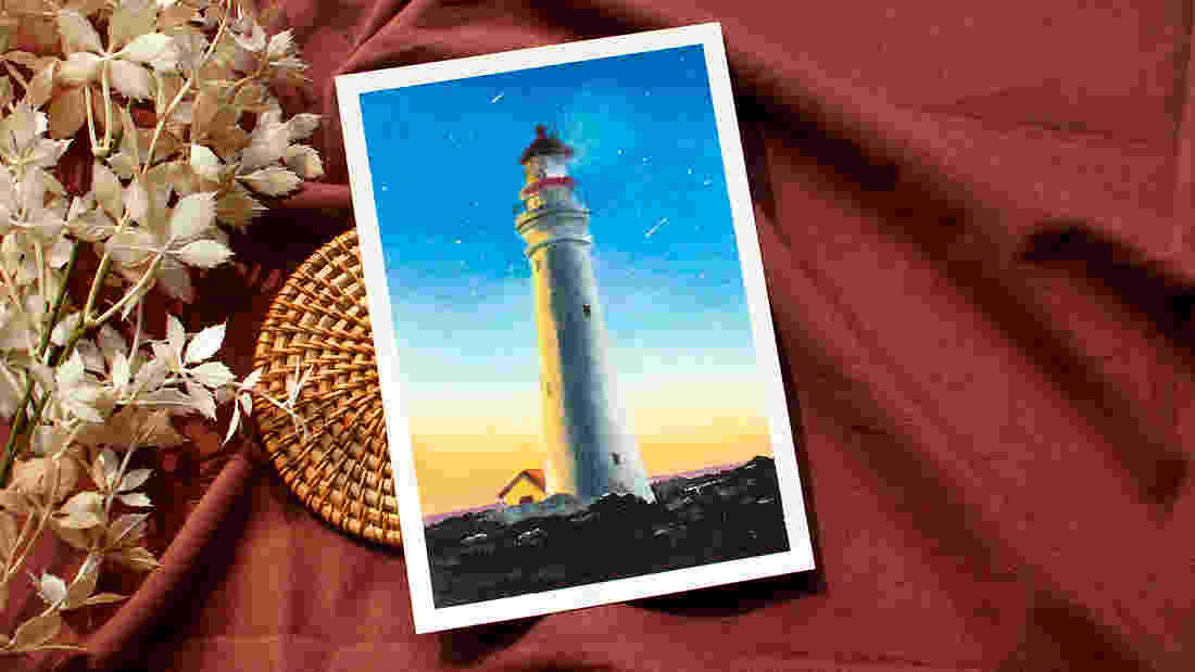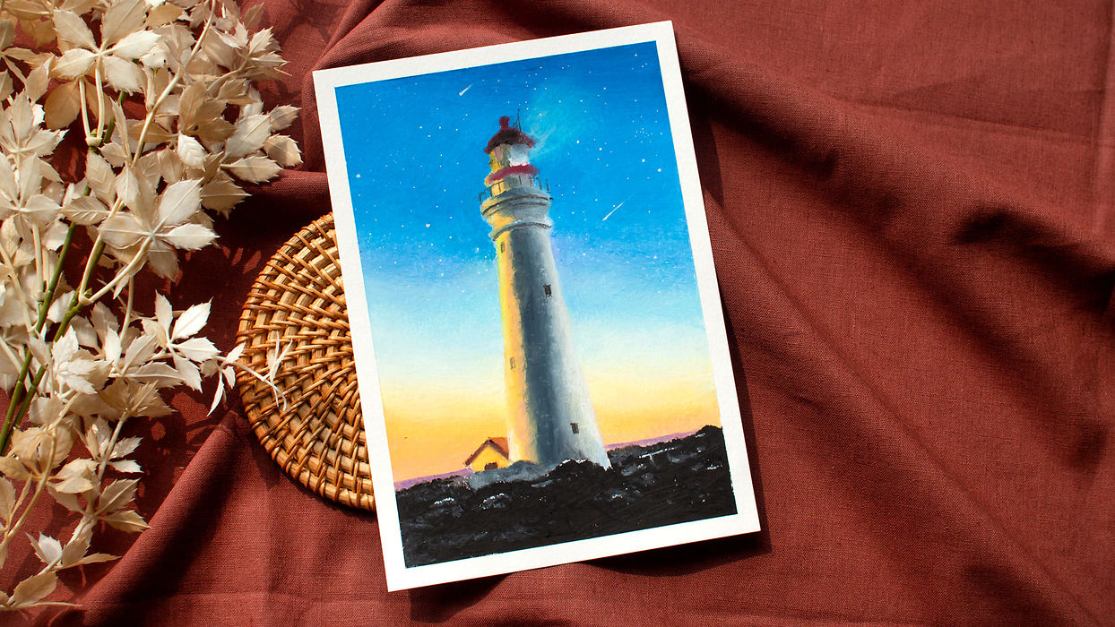 노을 무렵의 등대 ③등대의 디테일과 하늘의 별을 더하여 완성하기35분