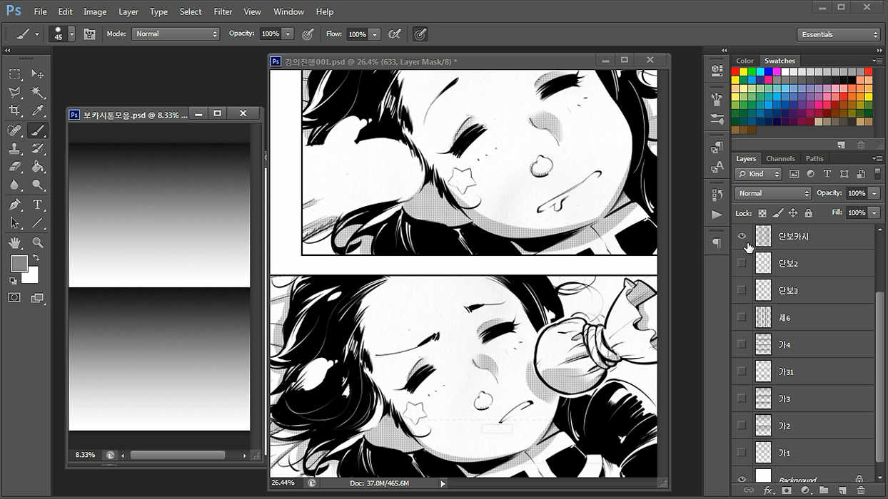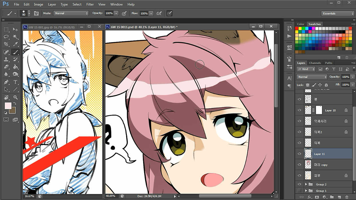 만화용 원고지에 펜으로 직접 그림을 그리고 스크린톤을 붙이는 전통적인 수작업 방식부터 컴퓨터와 타블렛을 이용한 디지털 작업 방식까지, 출판 만화 제작의 전 과정을 경험할 수 있는 종합 만화 강의입니다.