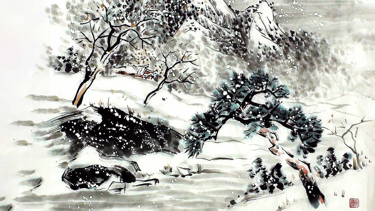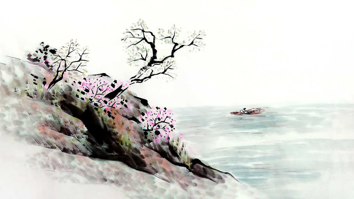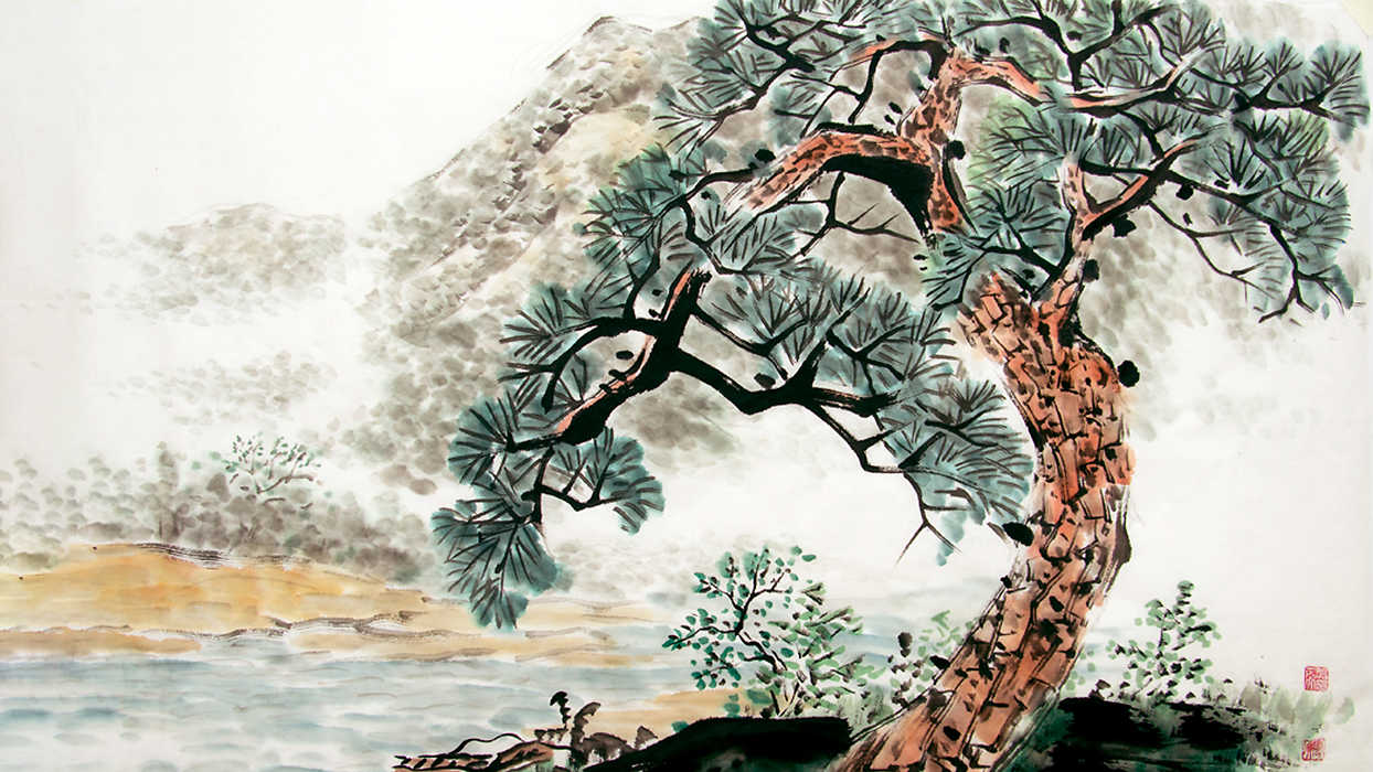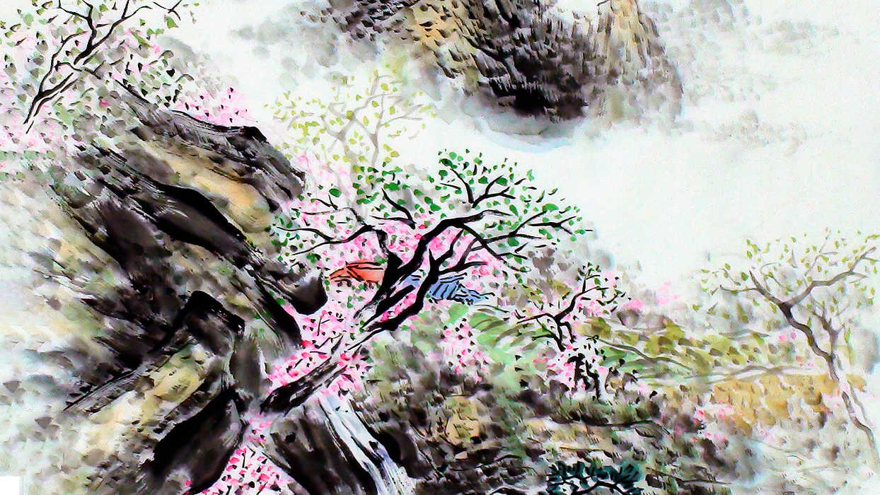 산과 강 등의 자연경관을 소재로 그린 동양화로, 인물이나 꽃, 새와 함께 많이 그려지며 사계절과 짝을 맞추는 경우가 많습니다.